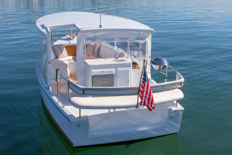 Introducing the all-new 23 Sun Cruiser—the latest evolution in Duffy Electric Boats. This model features a completely redesigned hull, a larger aft deck, and a solid fiberglass hardtop that resists rot and sun damage, providing lasting durability and timeless style.